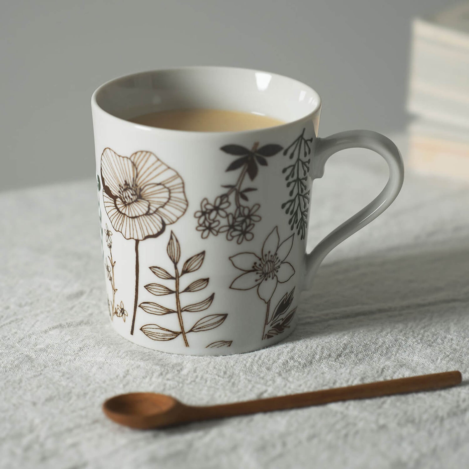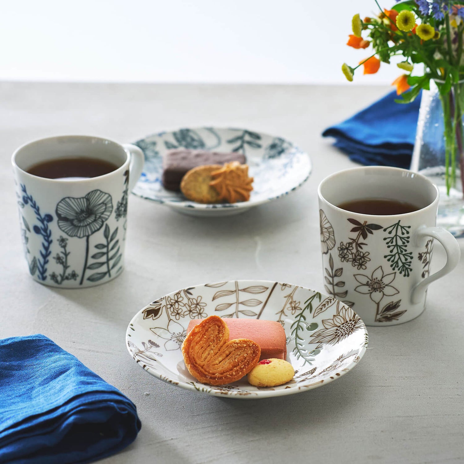 『フラワーパターン』の絵柄は、自然から一部を切り取ったようないろいろな花々をモチーフにしています。風に揺れる草花たちは、食卓を可憐な印象に演出。ナチュラルなインテリアは勿論、無機質でクールなテーブルにも”花を添える”器です。