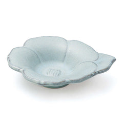 日本の伝統色からインスパイアを受けた花の色は、単純な一色ではないのが魅力です。うっすらと素地の色が浮かぶ輪花の縁や、釉薬の粒、深みのある風合いなど盛り付けた料理を一層魅力的に引き立てるポイントがたくさんあります。