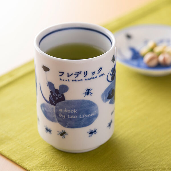 心に残る絵本のワンシーンを切り取ったデザインに、思わず手の中でくるくると回したくなる湯呑です。日本茶に馴染む和テイストの藍色の濃淡が、キャラクターを落ち着いた印象に引き立ててくれます。