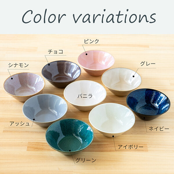 単色でありながら、濃淡、繊細な粒子、うっすらと浮かぶ白濁など、一つ一つに個性が溢れる釉薬の揺らぎが、高見えするポイント。約14cmのボウルはシリアルやサラダ、和え物などシンプルな料理も引き立てる器です。