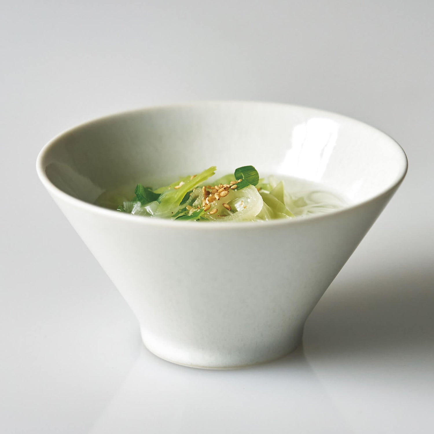 単色でありながら、濃淡、繊細な粒子、うっすらと浮かぶ白濁など、一つ一つに個性が溢れる釉薬の揺らぎが、高見えするポイント。マルチボウルはご飯やスープ、お茶漬けやうどんのつけ汁などの和食料理も引き立てる器です。