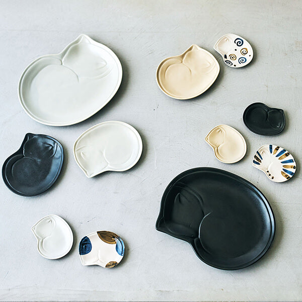 柔らかな色と優しいマット仕上げの愛らしい猫の器たち。思わず撫でたくなるような肌触り感とテーブルの上で丸まって寝ているようなフォルムがかわいい。