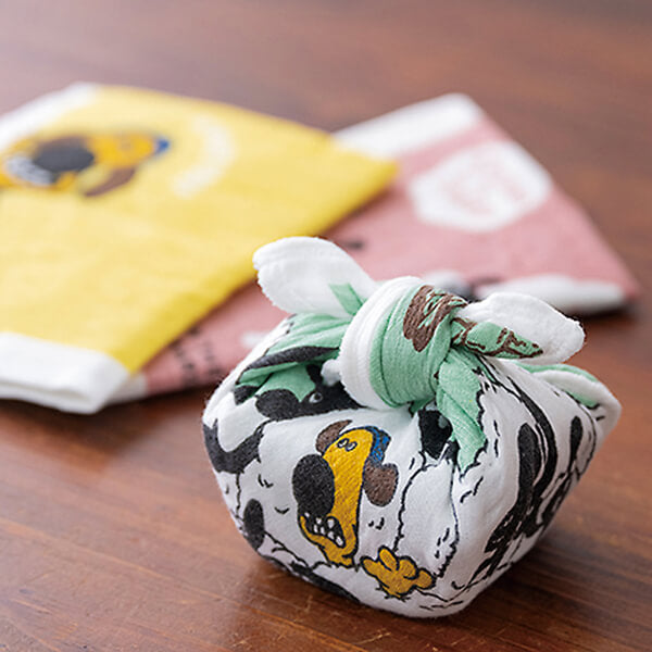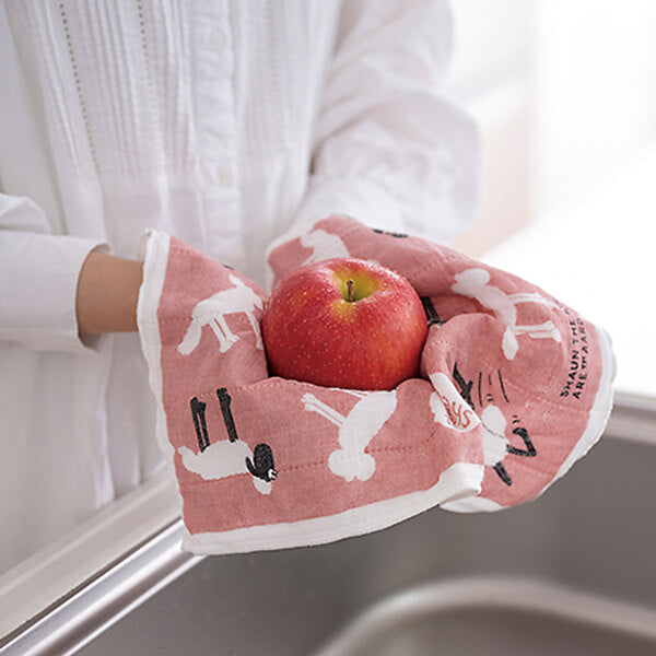 約40×30cmは両手で包み込むように使えるサイズ。お鍋の蓋を持ったり、お弁当を包んだりしやすいサイズです。また厚手の生地は熱を通しにくく、鍋掴みやオーブン料理の器を持つ時に便利。