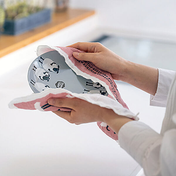 吸水性に優れているので、食材の水気取りや洗った食器の下にひく水切りタオルとしてもおすすめです。繰り返し使えるので、キッチンペーパーよりもエコです。