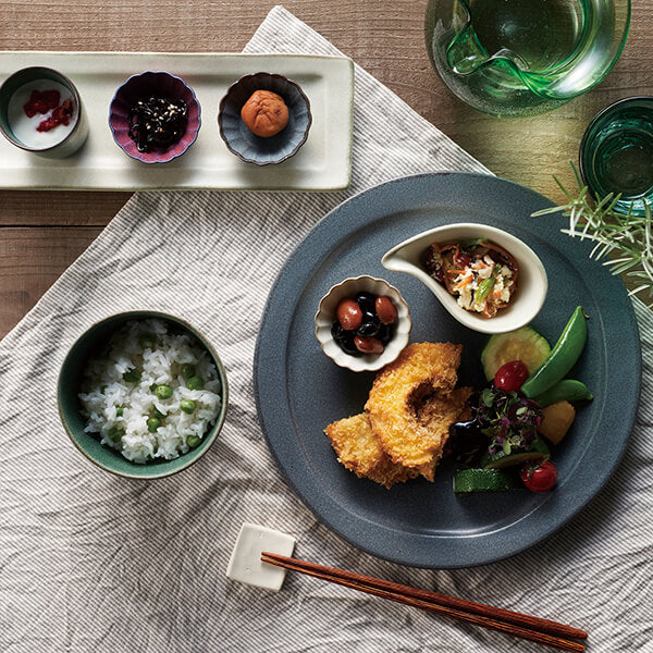 少し揺らぎのある丸皿、雲形、コロンとした丸碗、片口小鉢など一見個性が強そうな形の器たち。でも主張しすぎないその揺らぎの形が、マンネリ気味のコーディネートの幅を広げます。